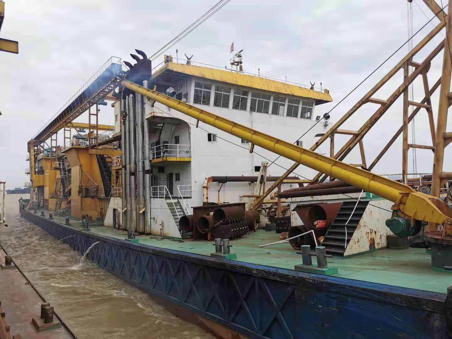 挖沙船的主要工作原理:该设备由船体、输送系统、进水系统、排空系统等组成,输送系统包括动力、离合器、抽沙泵等,排空系统包括高压水泵、抽真空装置等。挖沙船利用水力的作用,将高压水枪喷射出的水柱冲起的细沙、海沙等在水泵的作用下由管道输送到目的地。